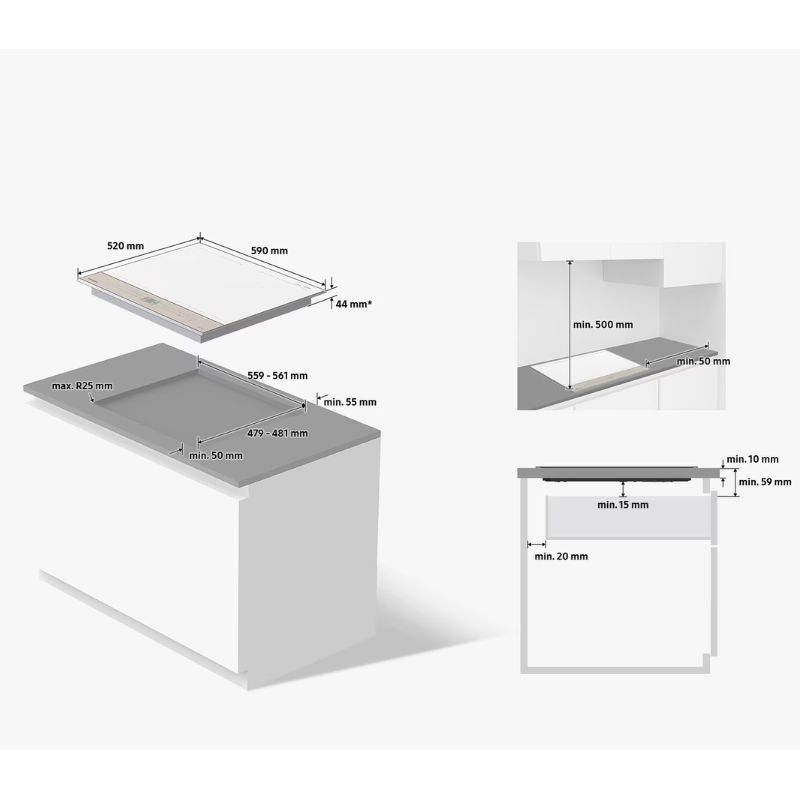- Sản phẩm được làm mỏng phẳng, lắp âm nên phù hợp với các mặt bếp có độ dày khác nhau, giúp mở rộng thêm không gian lưu trữ cho ngăn chứa đồ thường được bố trí bên dưới bếp.